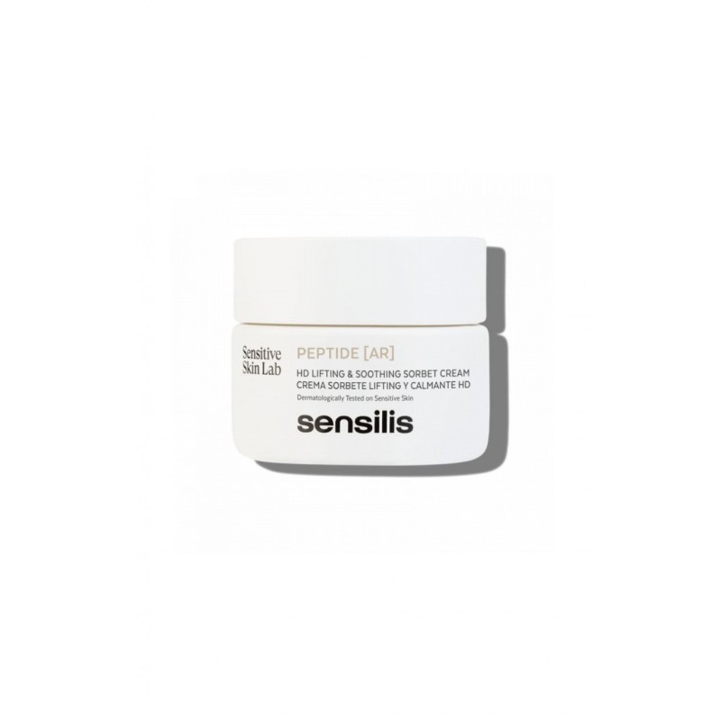 La Crema Sorbete Peptide AR de Sensilis, en su envase de 50ml, ofrece una absorción rápida con efecto lifting inmediato. Mejora la firmeza y elasticidad de la piel, hidratando y reparando los signos de sequedad. Calma la sensibilidad cutánea desde la primera aplicación.