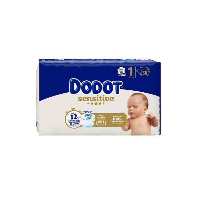 Pañal infantil dodot sensitive talla 1 2-5 kg 58 unidades, el pañal sensitive es suave como una pluma, con materiales de óptima calidad para una óptima sensación de suavidad en su piel