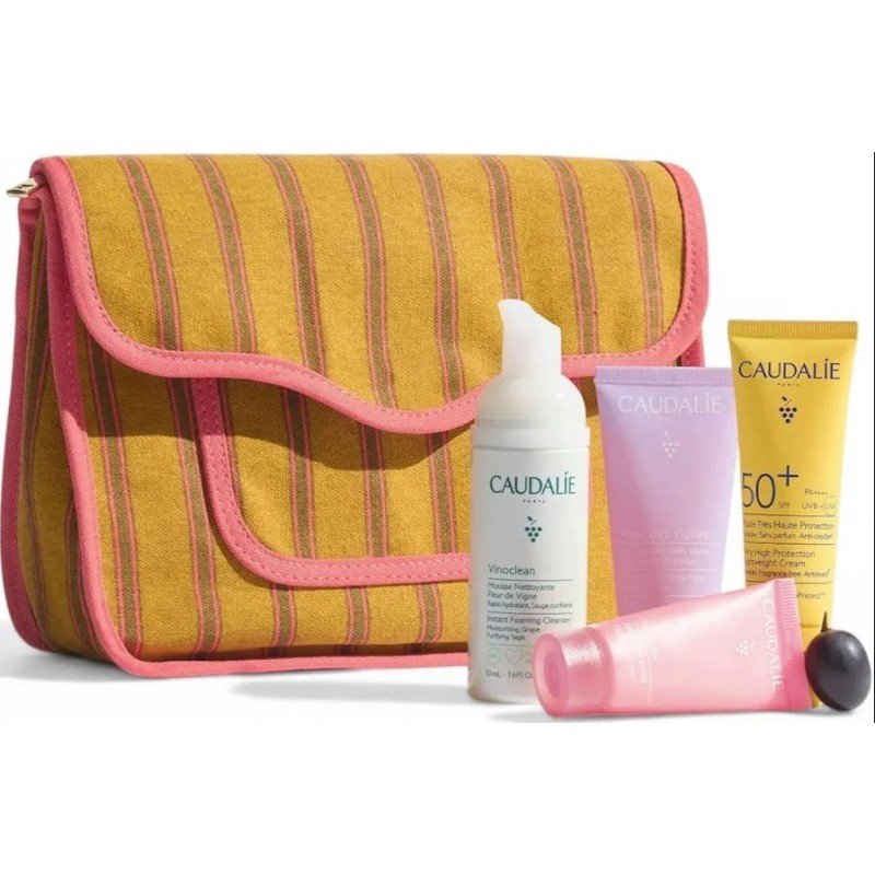 El neceser de viaje de caudalie es la solución completa para mantener tu rutina de autocuidado fuera de casa con fórmulas clean y altamente eficacesEste kit esencial reúne los pasos fundamentales de belleza en formatos aptos para equipaje de mano, garantizando una piel limpia e hidratada durante cualquier escapadaEste set de viaje incluye el agua micelar desmaquillante de 30ml para una limpieza suave sin aclarado, la icónica crema sorbete vinosource-hydra de 15ml que calma e hidrata el rostro al instante, el gel de ducha thé des vignes de 30ml que respeta el ph cutáneo sin usar jabón y el tratamiento corporal nutritivo hialurónico de 30ml para una piel suave y luminosa en todo el cuerpoTodos los productos están formulados con ingredientes de origen natural derivados de la vid, siguiendo los estándares de sostenibilidad de caudalie.