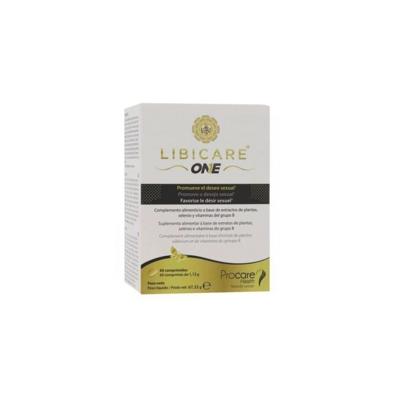 LIBICARE® ONE es un complemento alimenticio a base de extractos de plantas, selenio y vitaminas del grupo B, diseñado para mejorar la función sexual en mujeres con bajo deseo. Estudios han mostrado aumentos significativos de testosterona libre y mejoras en el deseo, excitación, lubricación, orgasmo y satisfacción sexual, con una tendencia a la disminución del dolor durante las relaciones.